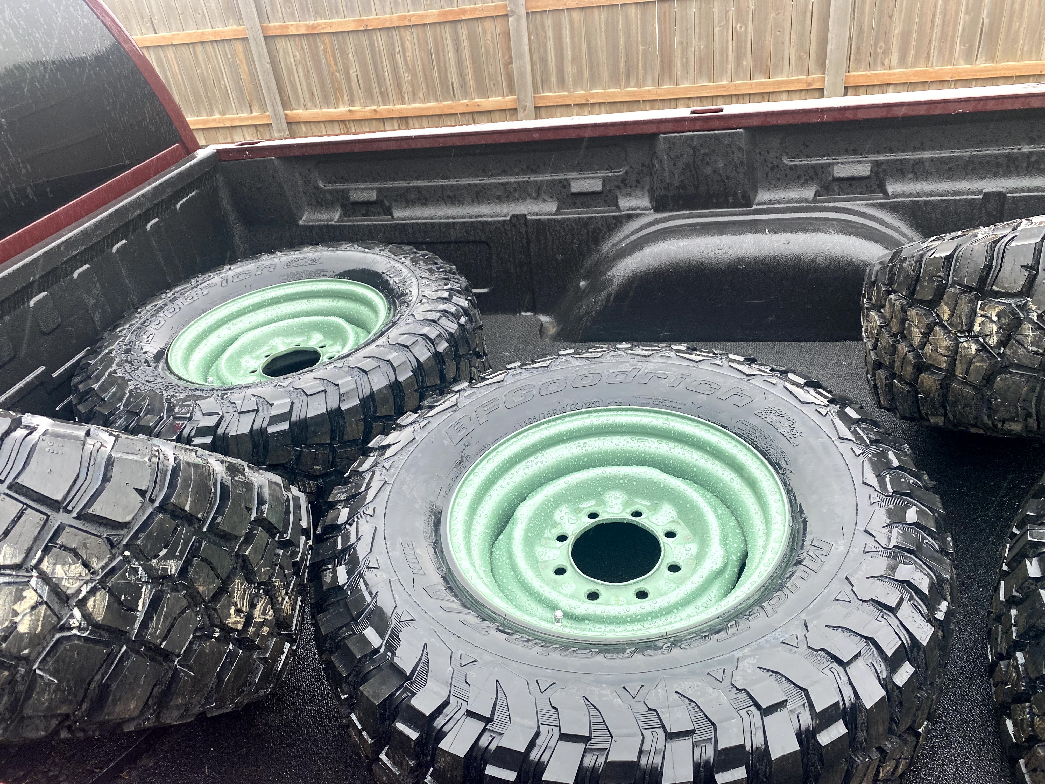 With the Panhandle Overland Rally just a couple weeks away, I still have to finish a ton of items. By tomorrow night, I should have it sitting on its new Dana 60 rear and on its new BF Goodrich Mud Terrains. It would have been tonight, but one of the brake calipers for the disc swap was boxed wrong, so its back to the parts store in the morning.