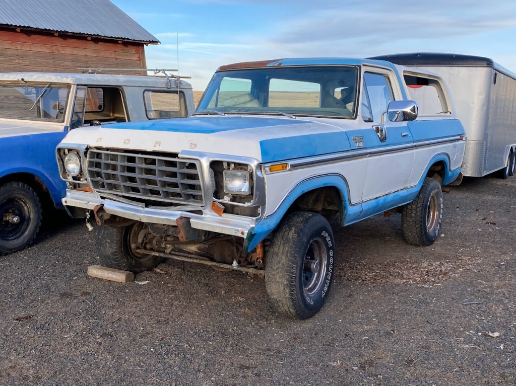 Now I know what you’re saying, “but a Bronco isn’t a trailer”, and to that I say, yet! I’ve been building this in my head for so long, I feel like I have a blueprint ready to go. This Bronco, or actually what’s left of it, is a perfect candidate for this project. This is the 3rd Bronco I’ve brought home for this project. The first one was too nice to cut up for such project. Since they were only made for 2 years, to pluck a fixable one from the herd would likely get my burned at the stake, (this one was black one in my past blog posts). You can see my friend and I bring this one back to life to prove my point. Now on to the 2nd, it was the “porridge too cold” Bronco that was too far gone to cut up for anything other than parts and scrap, rest assured, we saved everything we could. Now for the 3rd, a strange Bronco that appears to have been on the road to the scrap yard for along time. Don’t let the picture at the top fool you, it’s pretty bad.