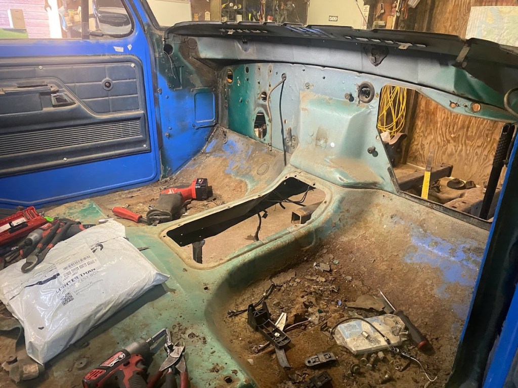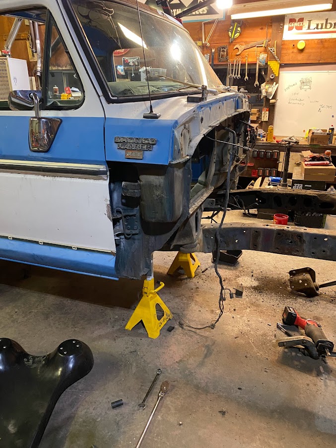 This Bronco is perfect for my project. The main parts I need are all here, frame, tub, doors and top. Yes, it’s missing a tailgate but luckily the last bronco I brought home happened to have a nice gate. Now for the work, it’s going to be a lot. First, I will be tearing out everything I won’t be using and preparing for the large job of cutting out the extra sheet metal, building the hitch and building in the new floor structure.