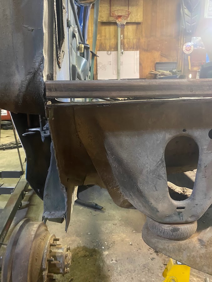 This picture shows how unsquare these old tubs can be. This square tube is flush on the other side, not here. With a little patience and a floor jack, you can start to flex the tub back into shape. If you’re a perfectionist, you’ll likely have a hard time, just get it as true as you can and get back to building.
