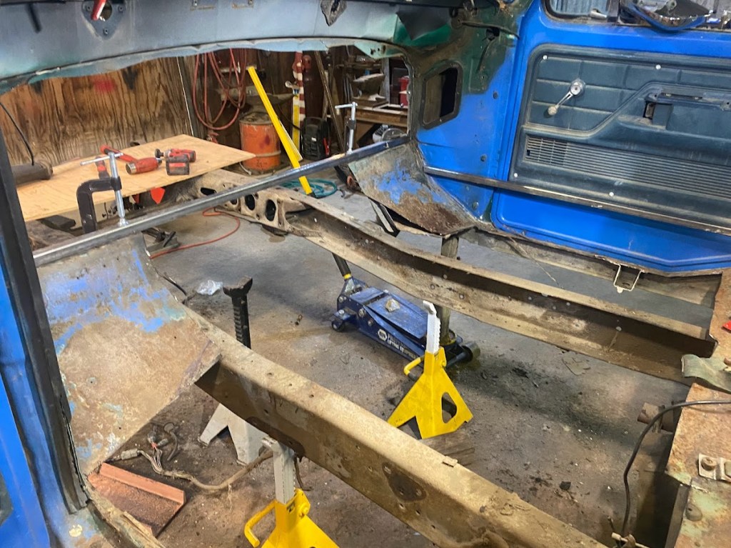 When you just start cutting, be careful not to cut too much and weaken the structure. As I cut the firewall and floor pan I started to tack weld in some extra support.
