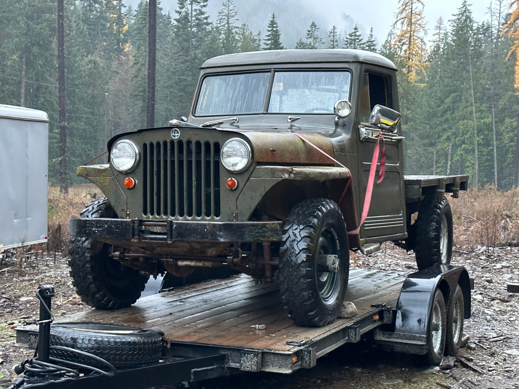 Up next is this early 1950 Willy’s pickup that at this time has no name. Rules for naming will come another day. Like many Willy’s pickups, it’s been used and abused. Remember, they were the first mainstream factory built 4×4 pickups and they found themselves getting worked pretty hard and this one is no exception. It has an interesting flatbed that won’t be staying and small block Ford V-8 that appears to have been swapped well. Still don’t know much about this one, its still on the trailer, so we haven’t figured out its personality just yet. Once the “weekend project Scout” that Ive been putting off for two years is done, the kids and I will drag it in, toss in a battery and see what happens.